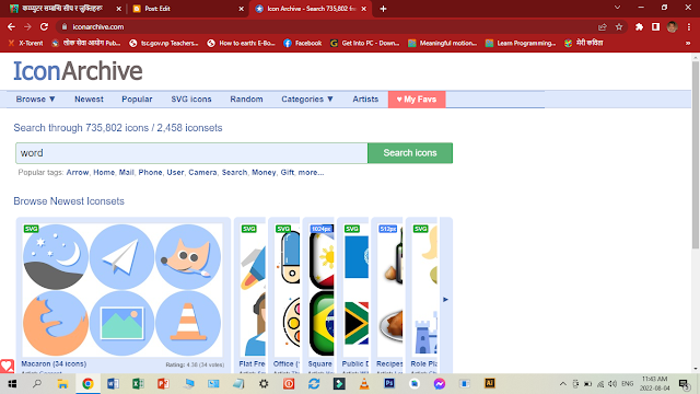 (iii) A lot of pictures will open. Each picture will show its format when you hover cursor over the picture. Select a picture with 'ICO' format and click on the 'ICO'. Your icon will start to download.